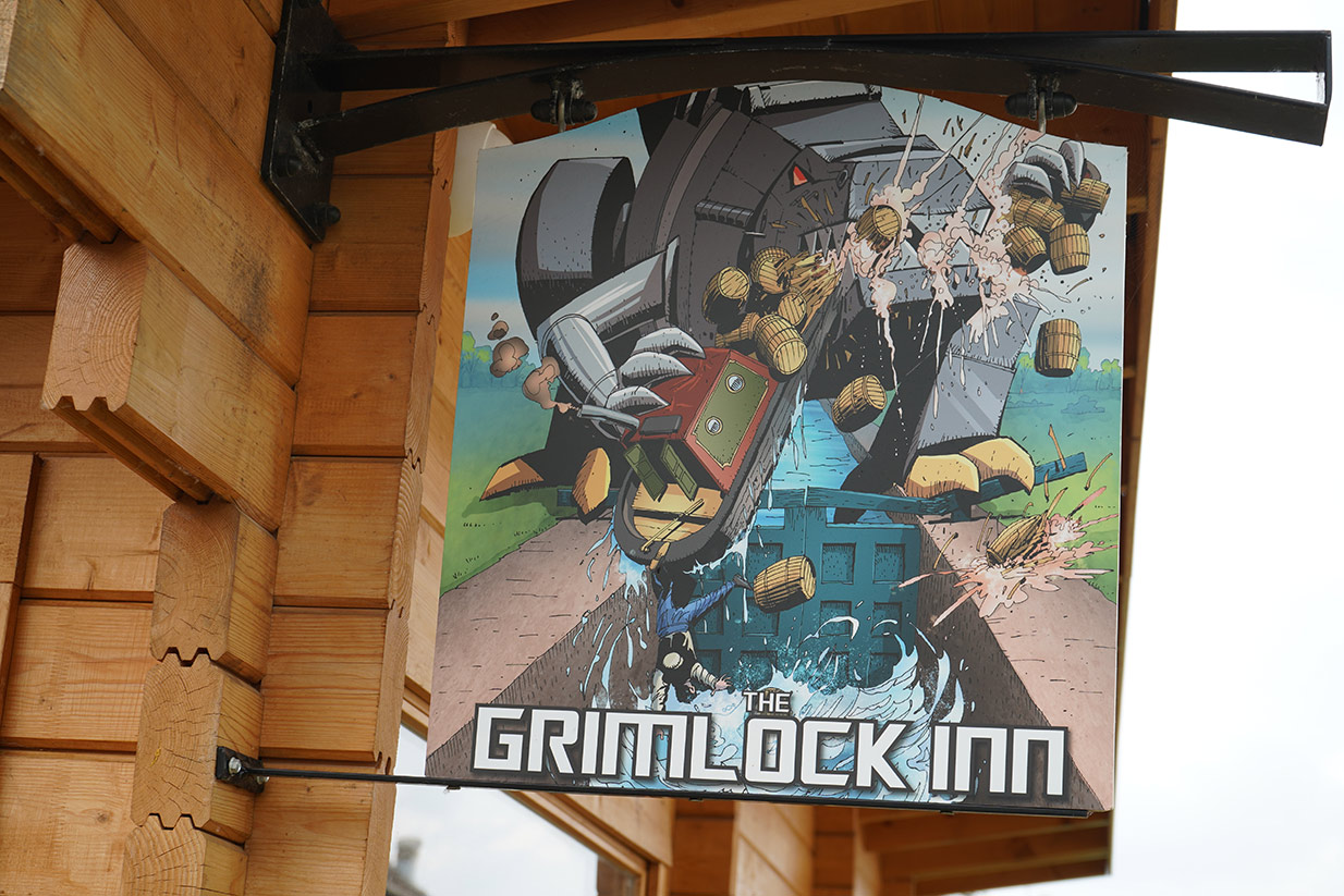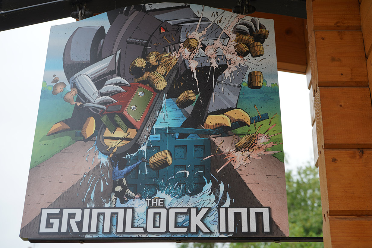 The Transformers-themed pub, named The Grimlock Inn (a pun based on the popular pub name ‘The Lock Inn’) features an decorative pub sign coloured by Transformers artist JP Bove, and drawn by legendary comic artist Geoff Senior.