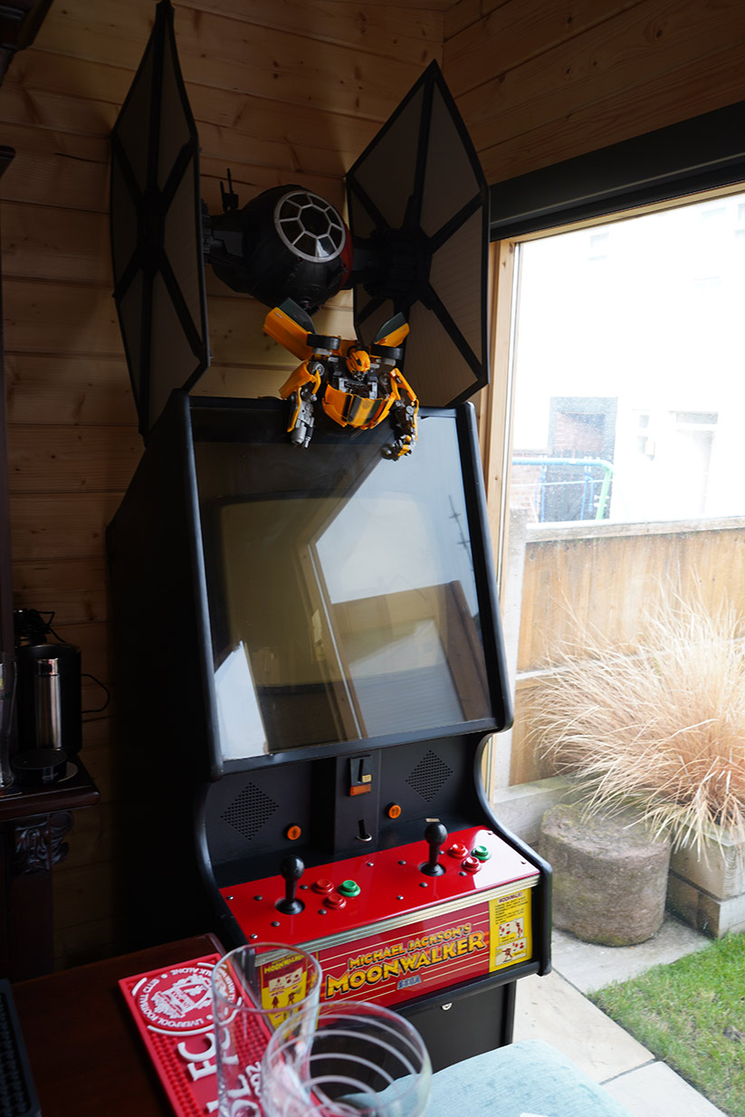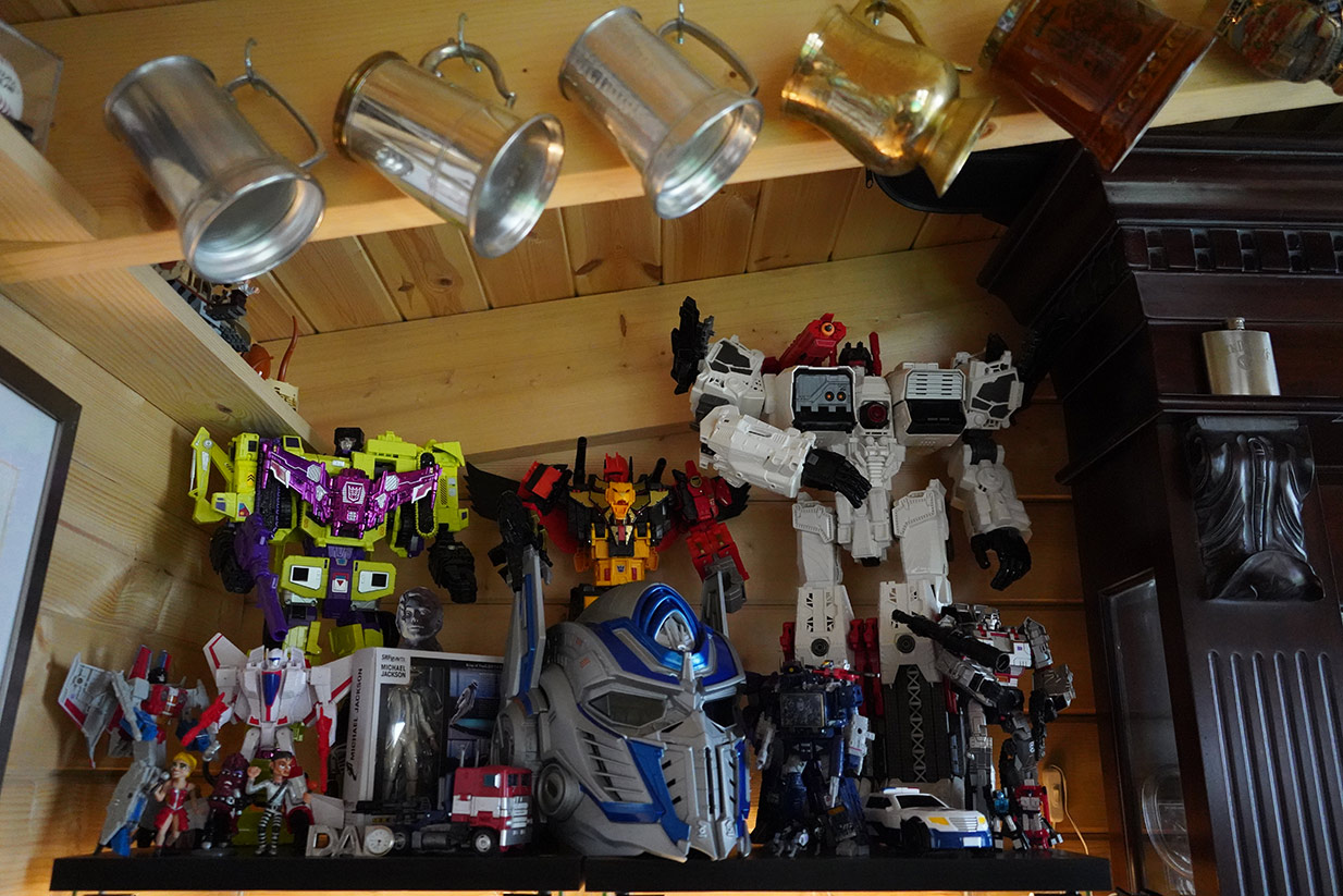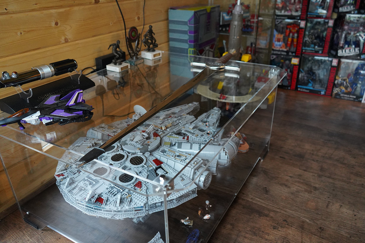 Other Transformers elements of note include some display cabinets crammed with ‘collectibles’, and a number of Transformers dotted about the bar. The theme is mixed with Star Wars, as a large coffee table houses the humongous Lego Ultimate Collector Series Millennium Falcon.