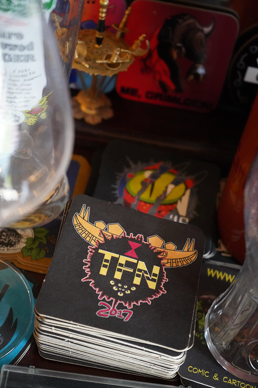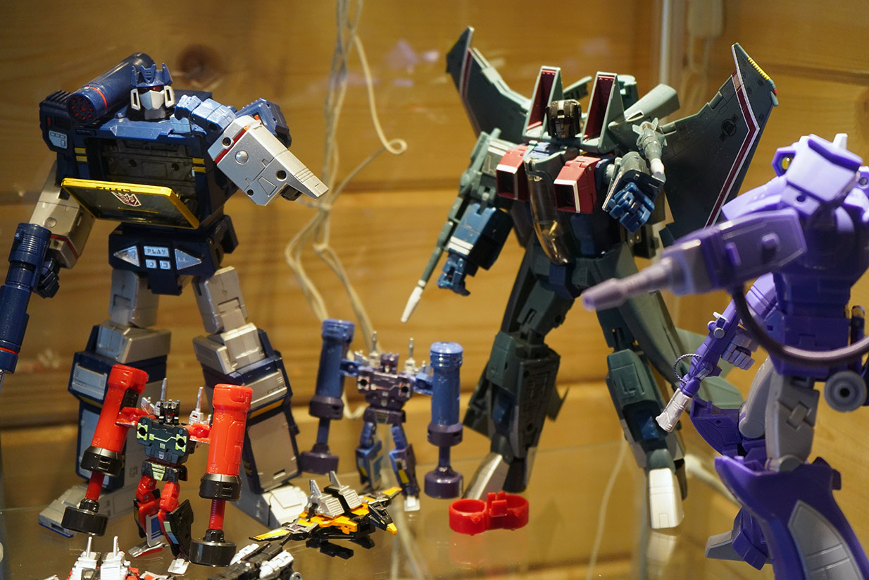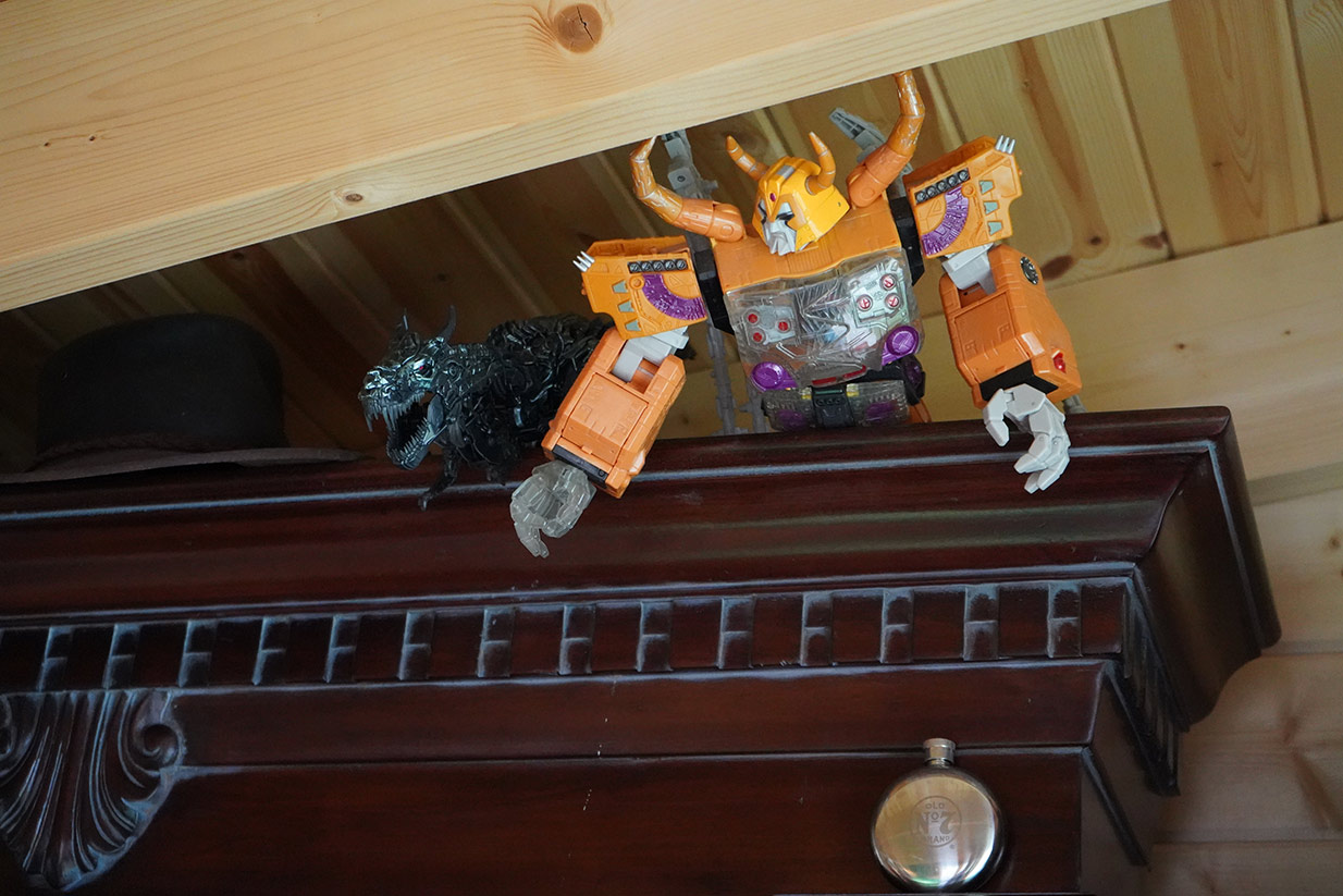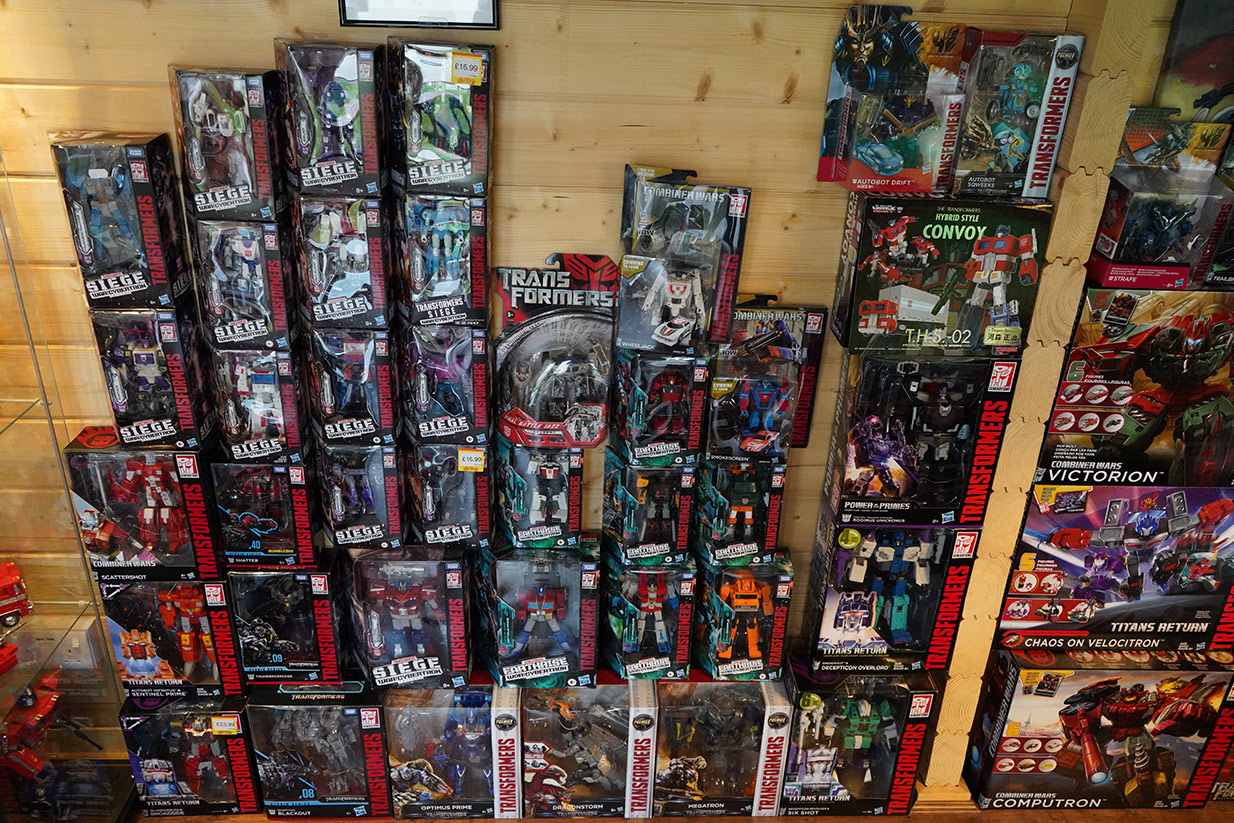 Other Transformers elements of note include some display cabinets crammed with ‘collectibles’, and a number of Transformers dotted about the bar. The theme is mixed with Star Wars, as a large coffee table houses the humongous Lego Ultimate Collector Series Millennium Falcon.