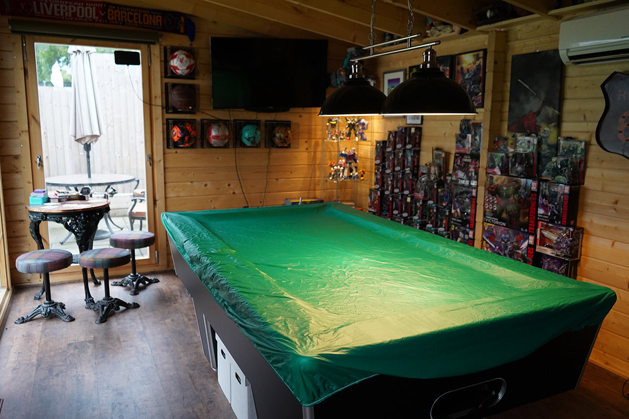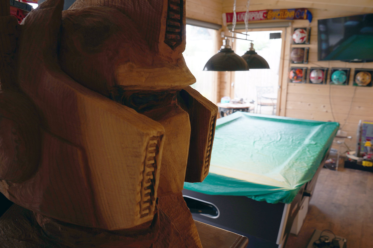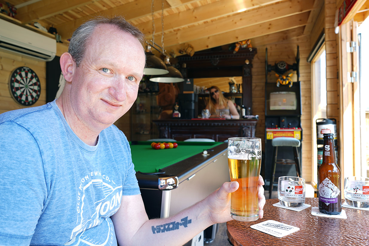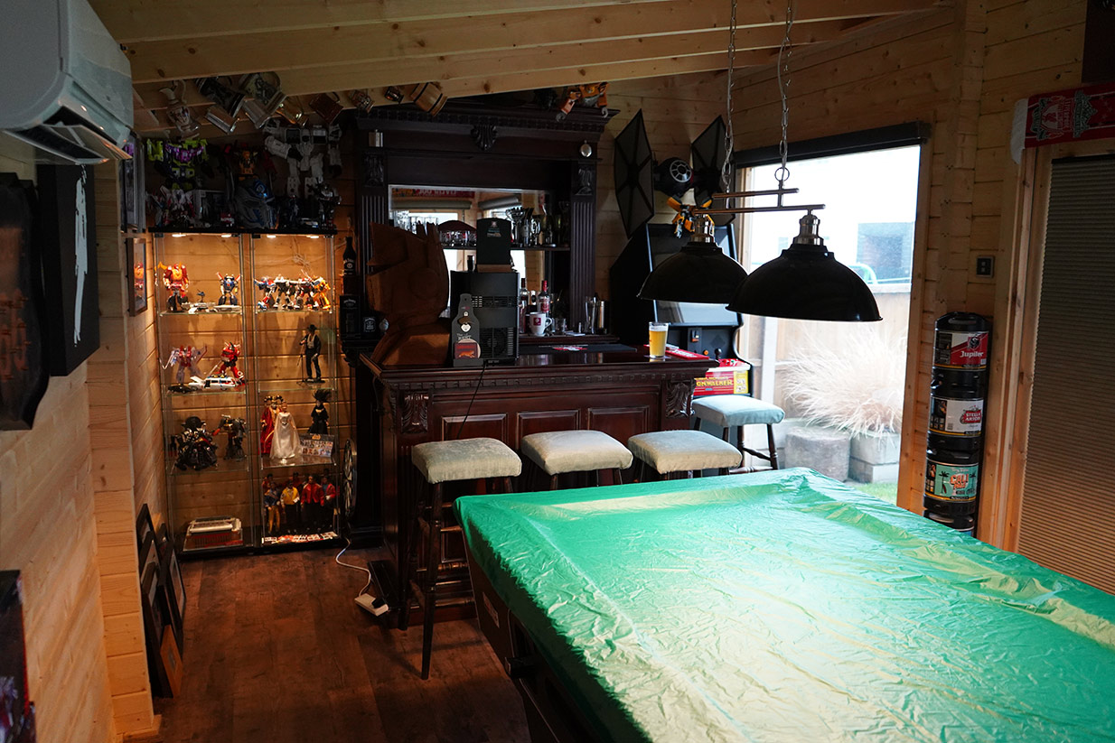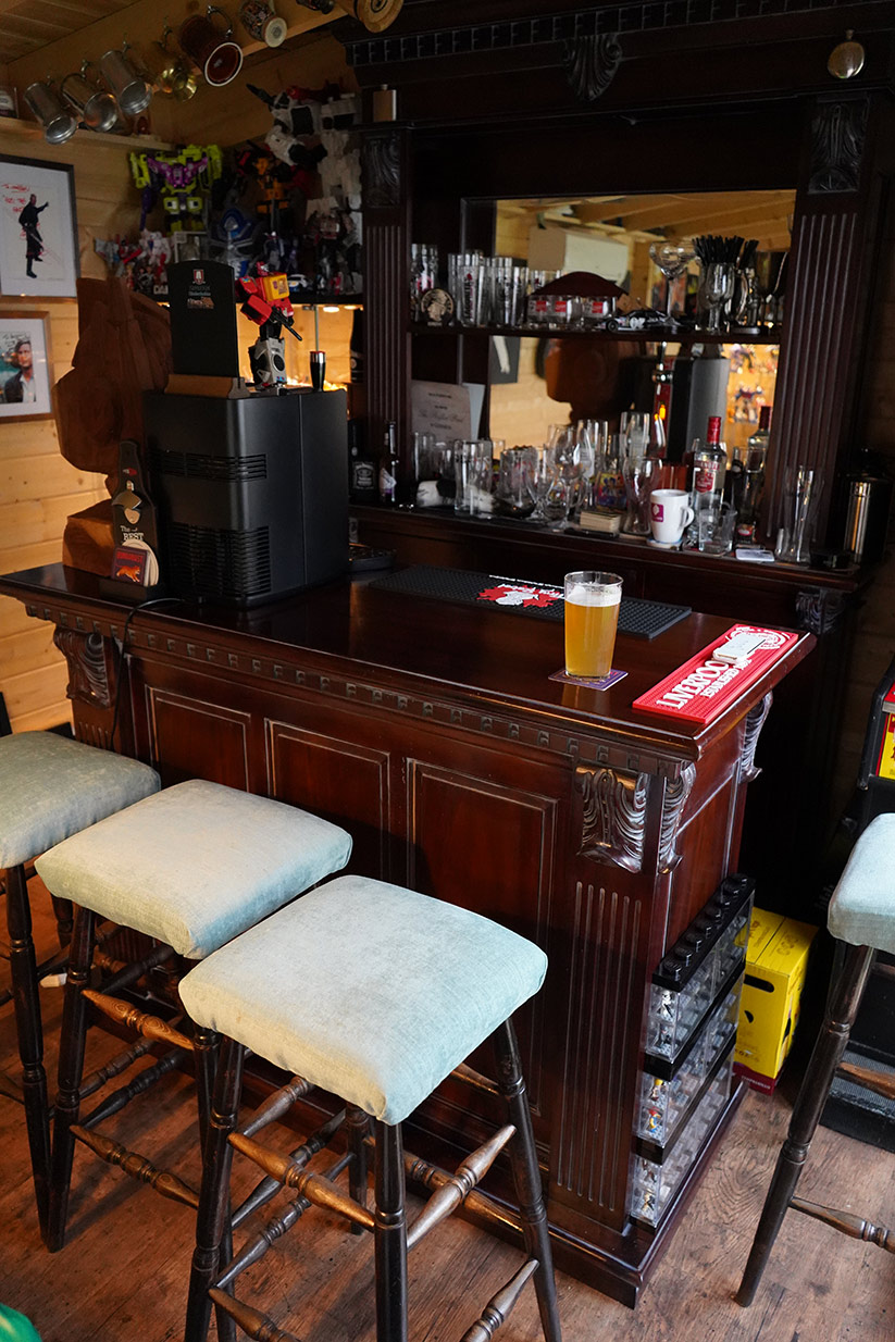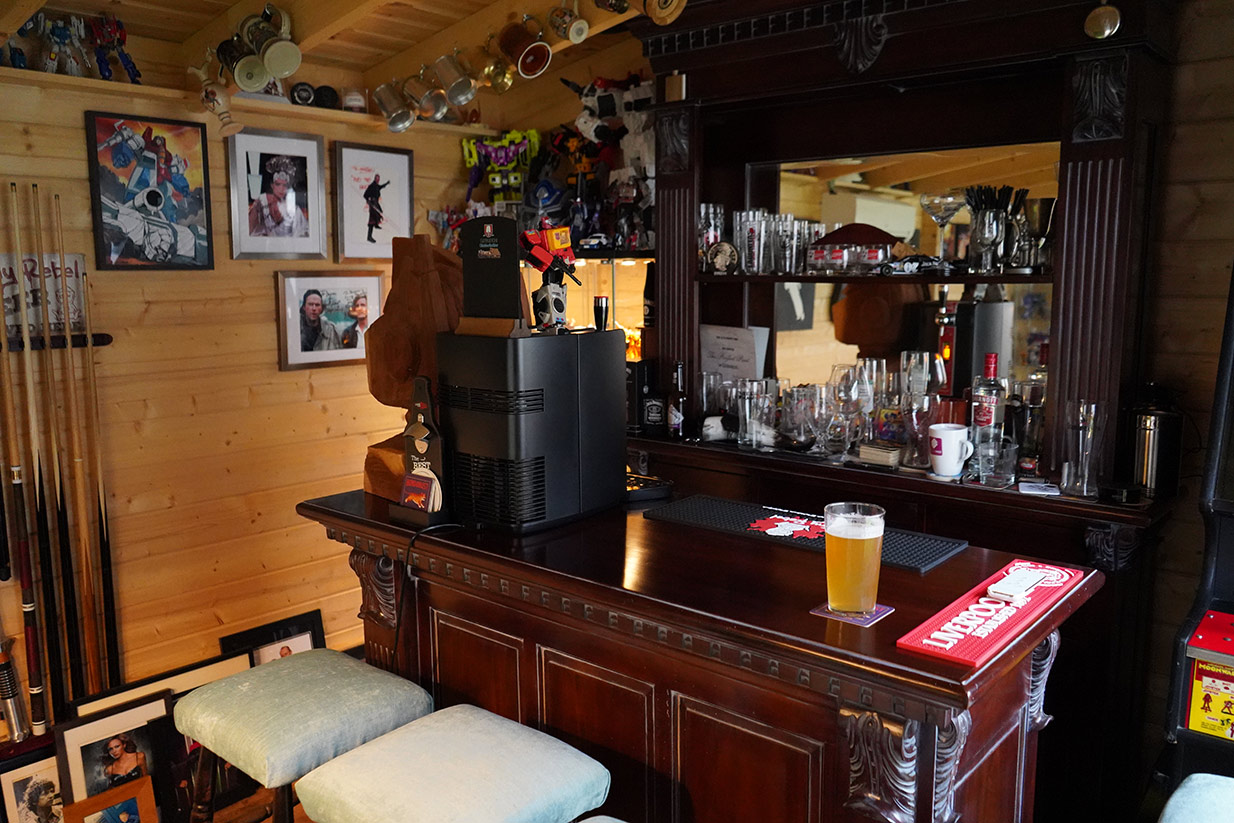 Based in Ellesmere Port, just outside Chester, the home bar features all of the usual things you would expect from a well-stocked pub. It has an old mahogany bar, a coin-operated pool table, a dart board and a 90s arcade machine, featuring the Michael Jackson classic Moonwalker.